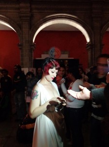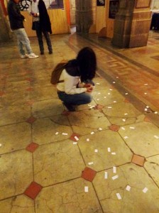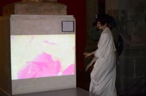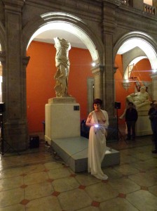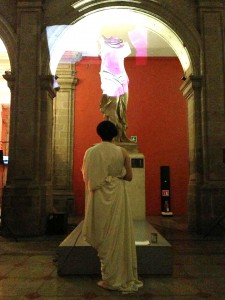Antes de regresar a Chile trabajé con esta dualidad “puta-madre” cuando participé en el Festival Internacional de Performance Extra con la pieza “Fragmentos de poder” donde utilicé términos peyorativos (chilenos y mexicanos) en torno al ser madre/mujer/artista que mostraban mi identificación con la reproducción de la escultura de la Victoria de Samotracia instalada en la Academia de San Carlos, donde accioné. Estas palabras que fueron entregadas al público muestran mi identificación con la escultura, que es una mujer mutilada, abyecta.